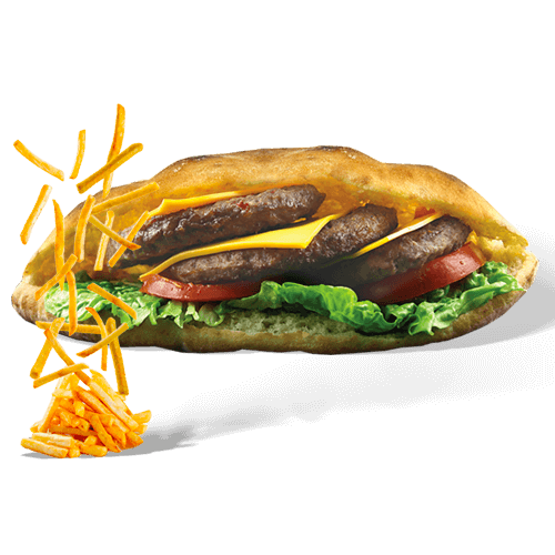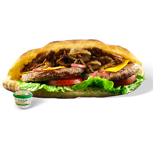 KEBAB, STEAK, ESCALOPE, CHEDDAR, SAUCE AUX FINE HERBES,