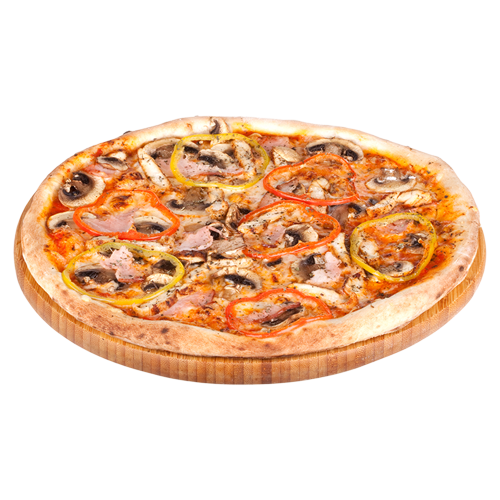 JAMBON, CHAMPI, POIVRONS, MOZZA,