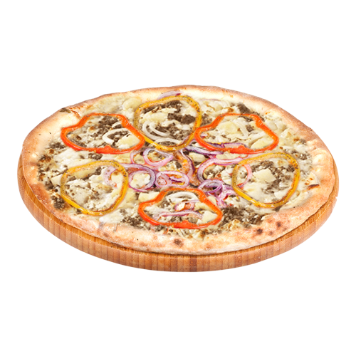 JAMBON DE DINDE, PDT, POIVRONS, OIGNONS, MOZZA,